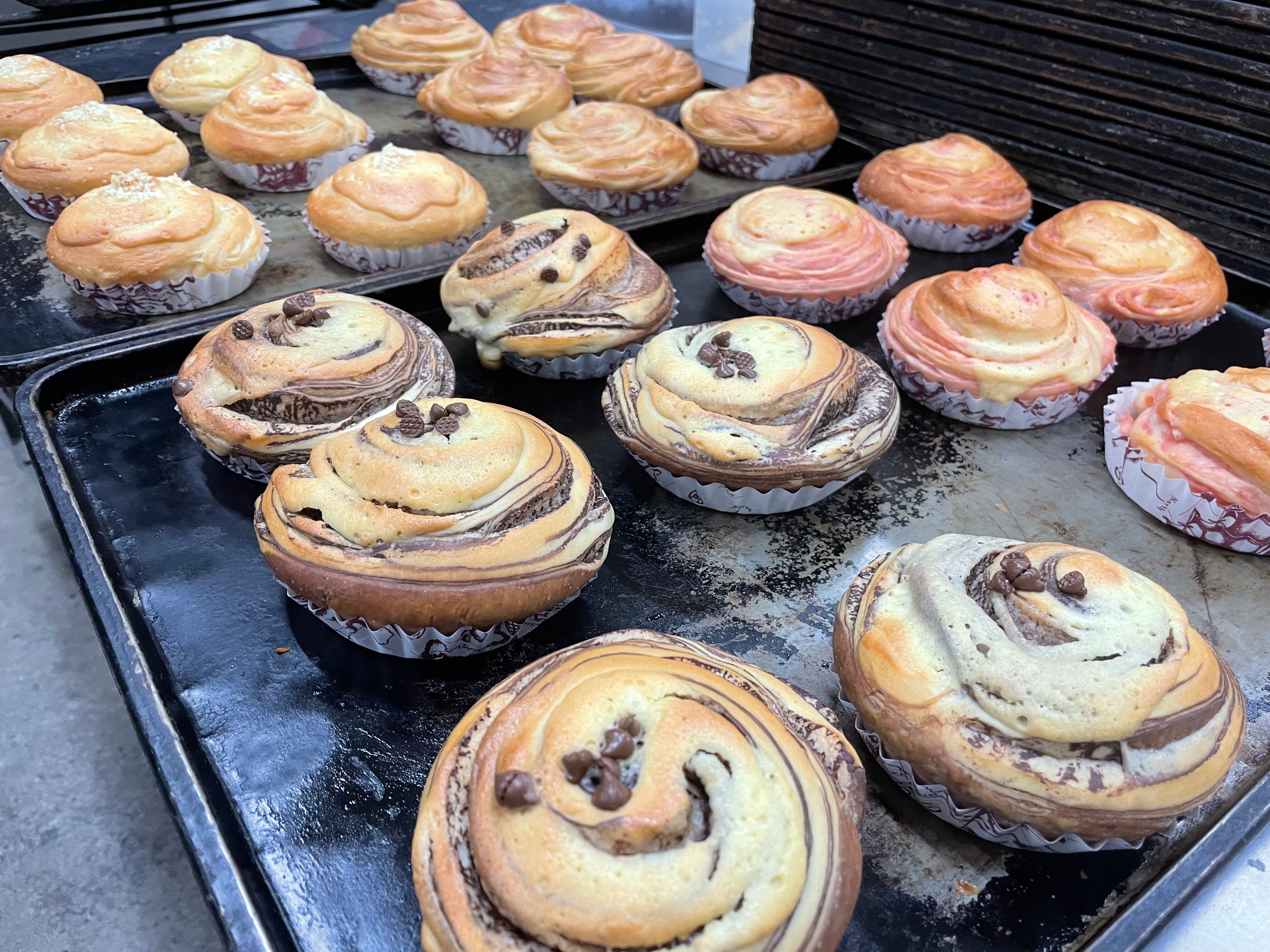 低糖質のブラン生地を使用したストロベリーの菓子パンになります。ストロベリーシートを織り込むことで、甘さと満足感を両立させました。