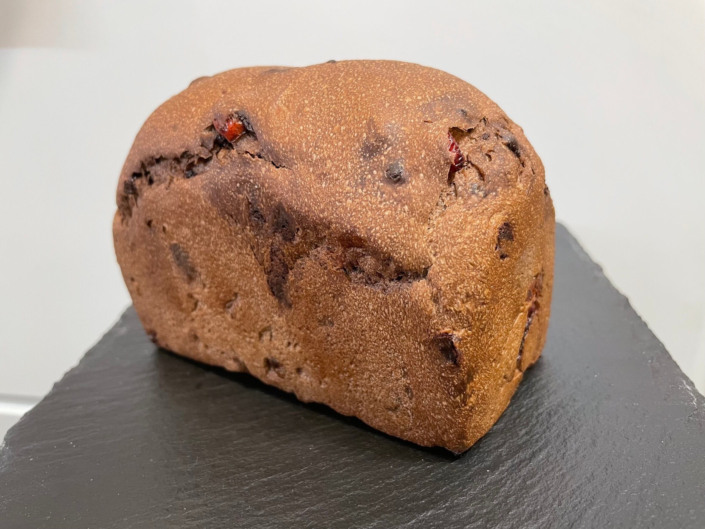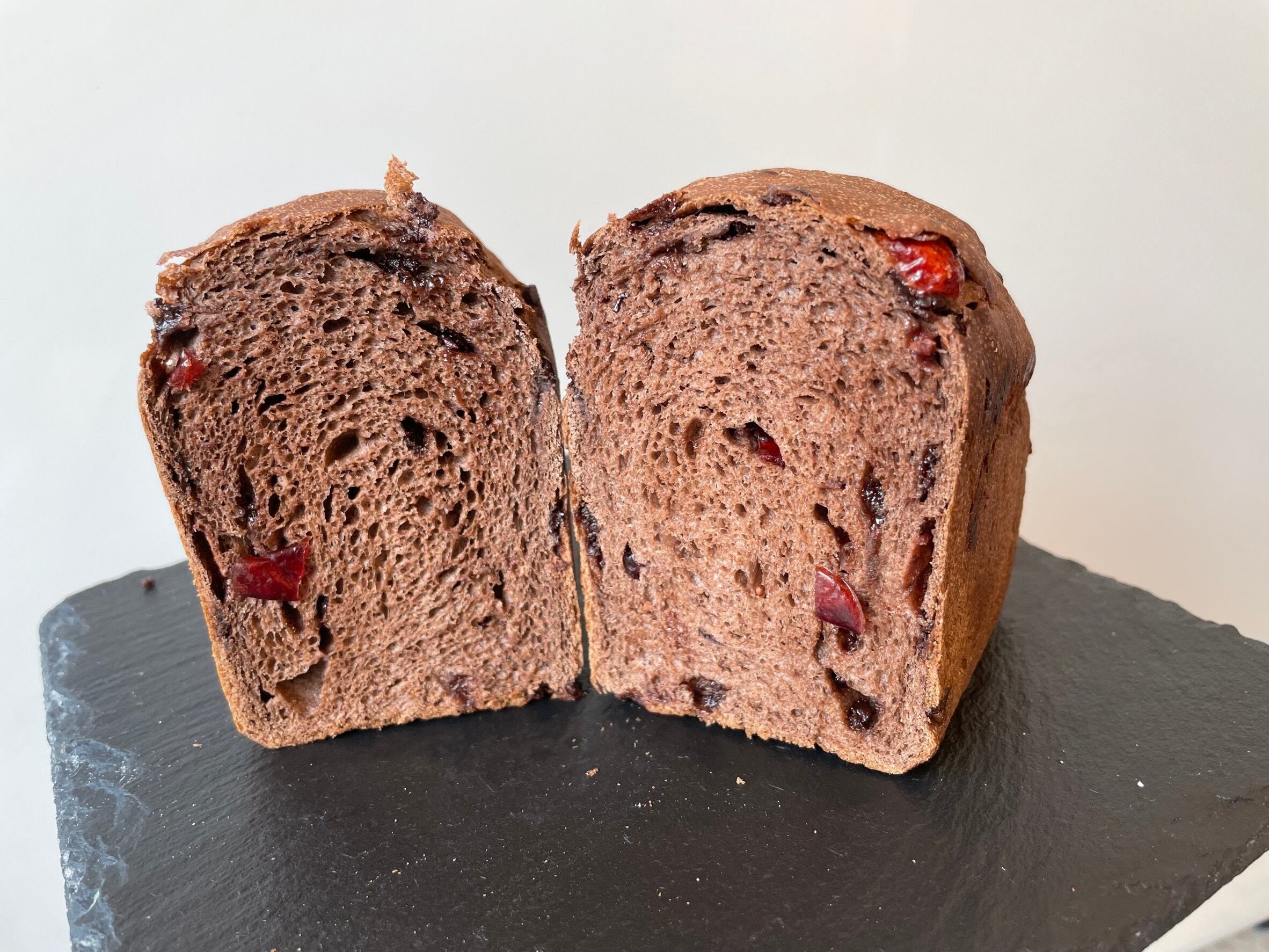 しっとりふんわりのパンに、チョコレートとクランベリーが入った贅沢なおいしさ。
